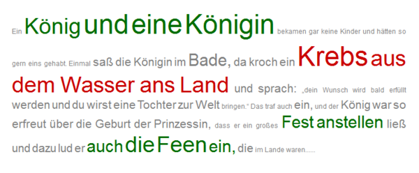per word is indicated by the size of the letters (as known from tag clouds). The tonality is indicated by colour: from green (positive) to grey (ambivalent) to red (negative).